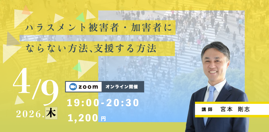 【登壇のお知らせ】公開セミナー「ハラスメント被害者・加害者にならない方法、支援する方法」開催(2026年4月9日)